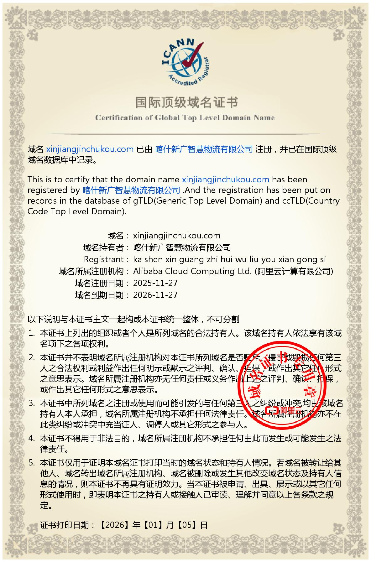 Kashgar Xinguang Intelligent Logistics Co., Ltd., established in 2024, is located in Kashgar Prefecture, Xinjiang Uygur Autonomous Region. It is an enterprise mainly engaged in loading, unloading, handling, and warehousing.